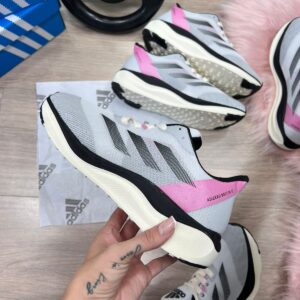 O Adidas Adizero Boston 12 é o tênis de treino avançado ideal para corredores que buscam conforto, leveza e performance em médias e longas distâncias. Esta versão combina cabedal cinza discreto com detalhes contrastantes em rosa, unindo estilo e funcionalidade.