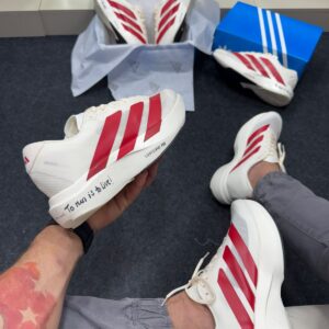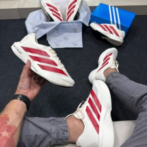 - Modelo: Adidas Adizero EVO SL (versão Off White / Vermelho)