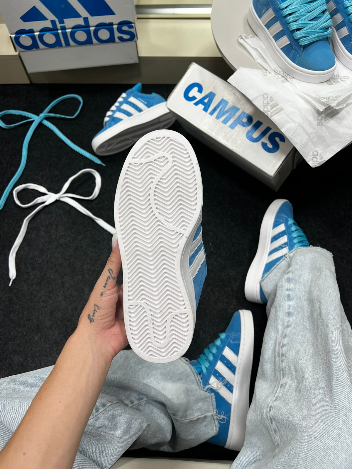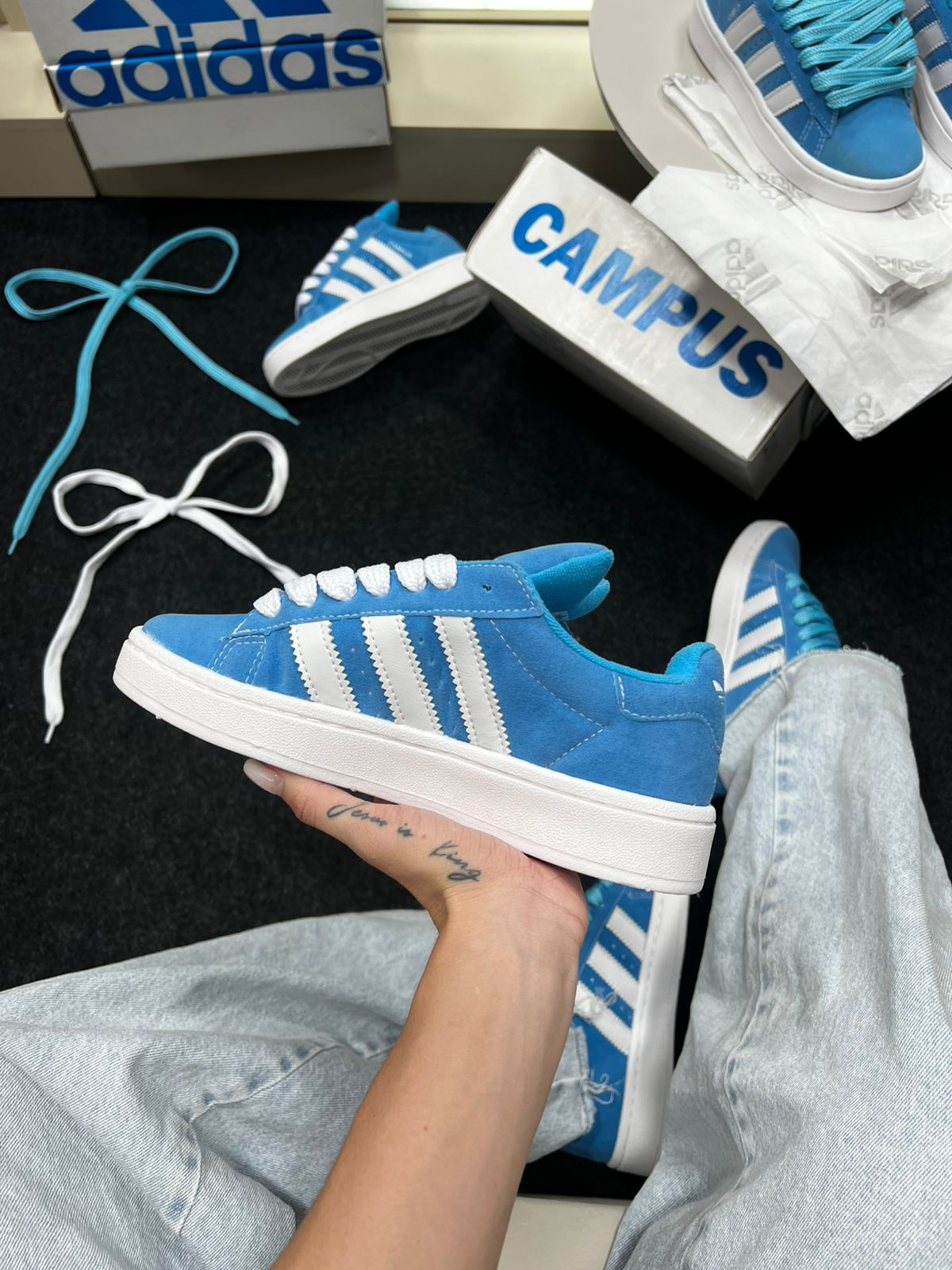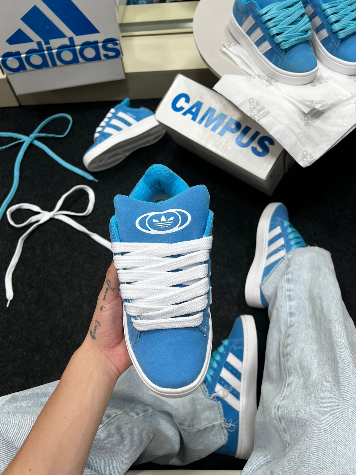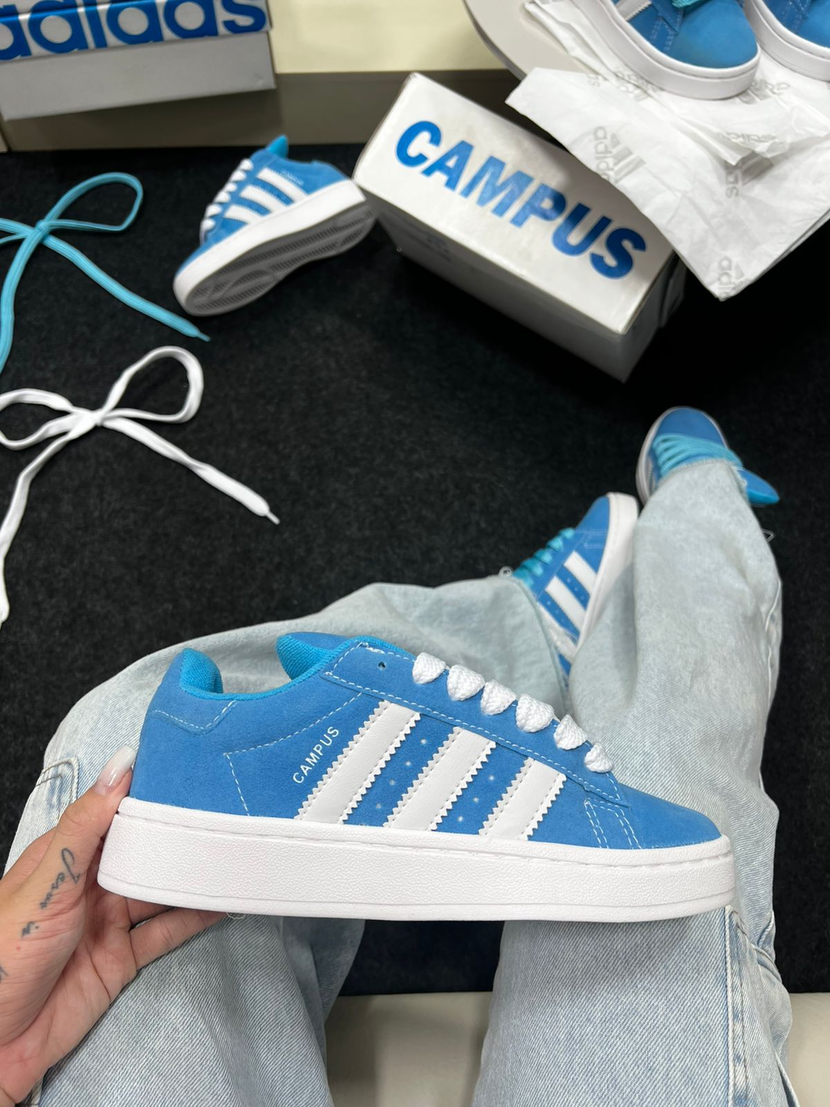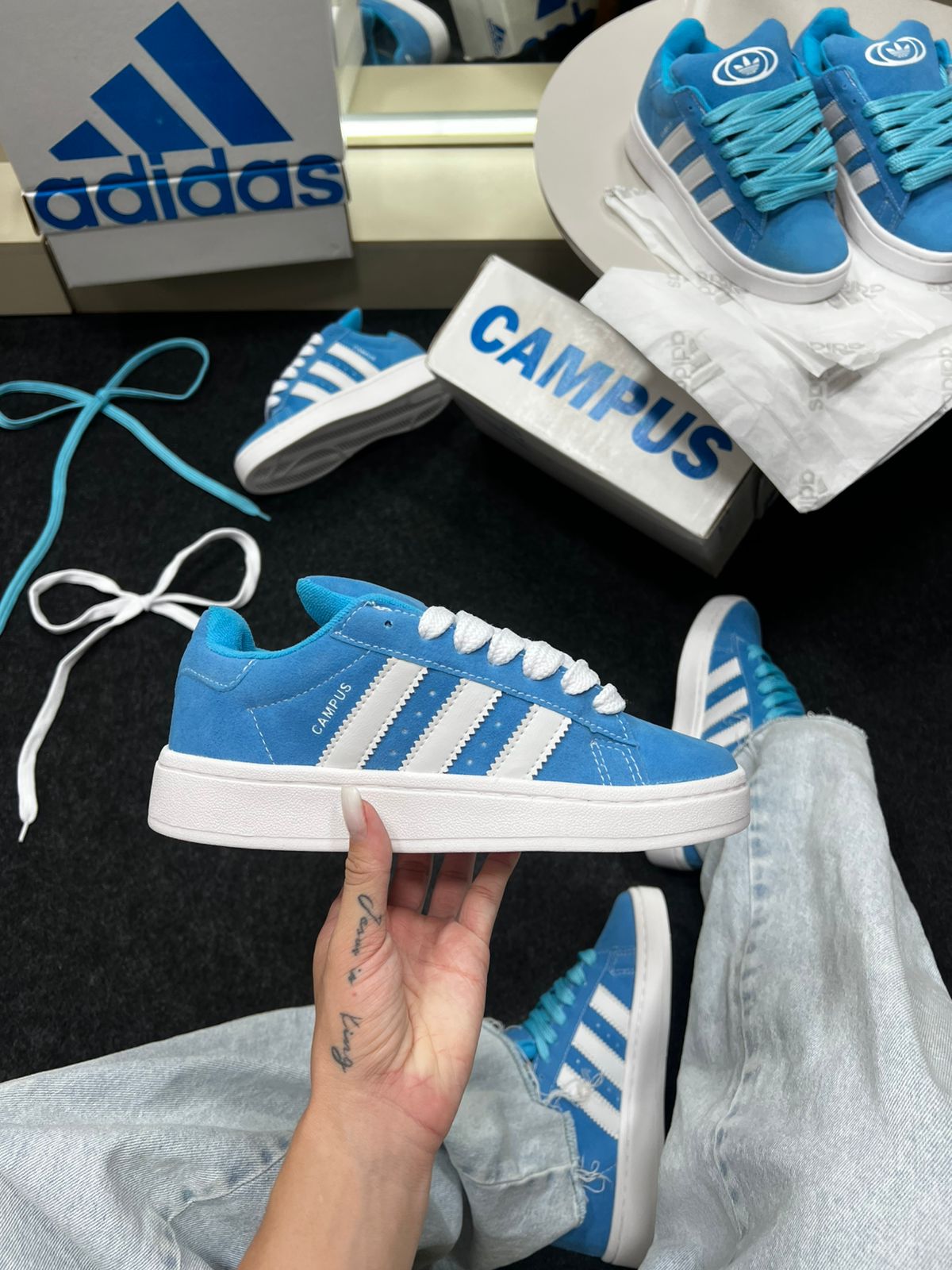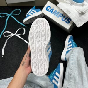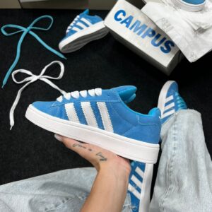 O Adidas Campus Azul Bebê Camurça Sintética é aquele tênis que fala de estilo antes mesmo de você dizer uma palavra. Inspirado na linha clássica Adidas Campus — ícone do streetwear desde os anos 80 — ele chega numa versão moderna com acabamento de efeito camurça em tom azul bebê suave, super desejado nas tendências atuais.
