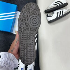 O modelo possui perfil baixo (low-cut), três listras laterais características da marca e acabamento minimalista que atravessa gerações. O Samba foi originalmente criado para jogadores treinarem em superfícies duras e escorregadias, o que explica sua sola resistente e excelente tração.