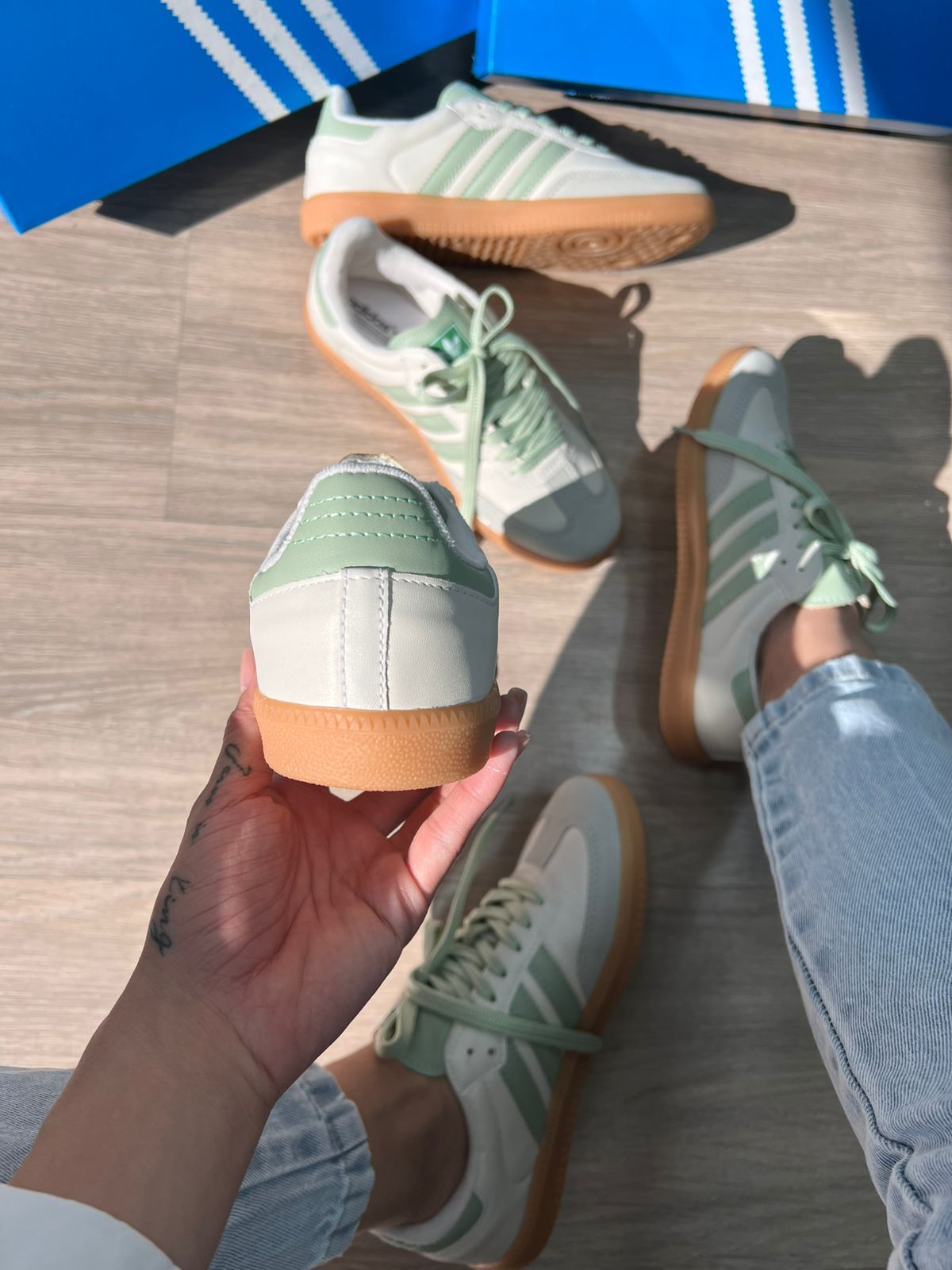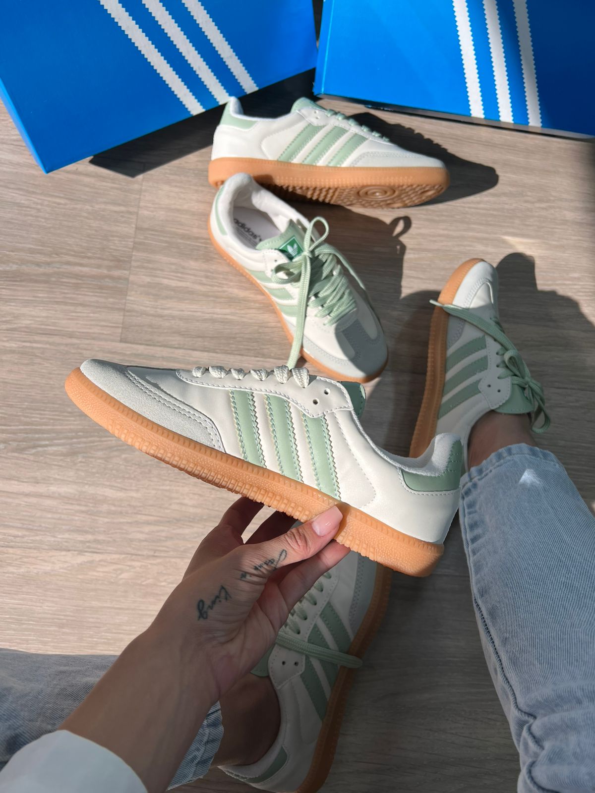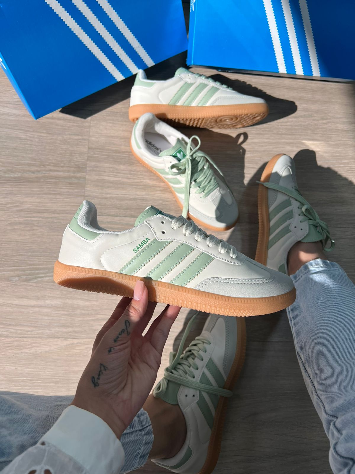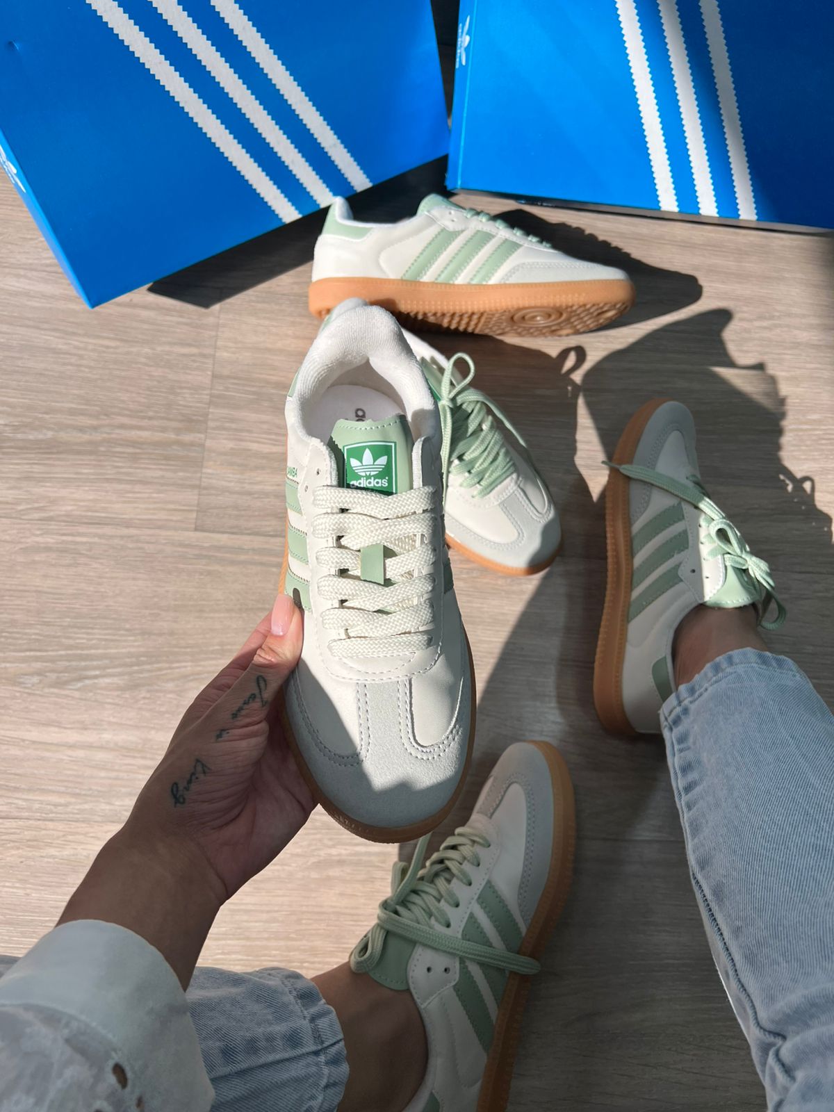 - “Tênis Adidas Samba OG branco com verde atacado”