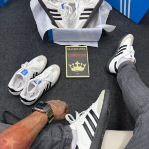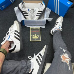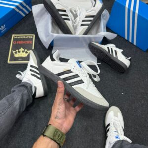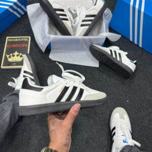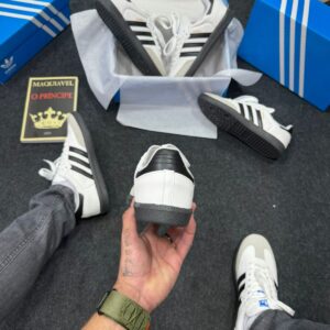 O Adidas Samba Premium Branco e Preto traz a essência do clássico do futebol indoor para o lifestyle moderno. O cabedal em couro com sobreposições em camurça/nubuck no “T‑toe” entrega durabilidade e visual autêntico, enquanto a tradicional sola de borracha “gum” garante tração confiável e aquele look retrô que nunca sai de moda. As Três Listras serrilhadas em preto criam o contraste icônico sobre o branco, e o ajuste “true to size” facilita a compra. Um best‑seller para revenda, com alta aceitação em vitrines de streetwear e casual premium.