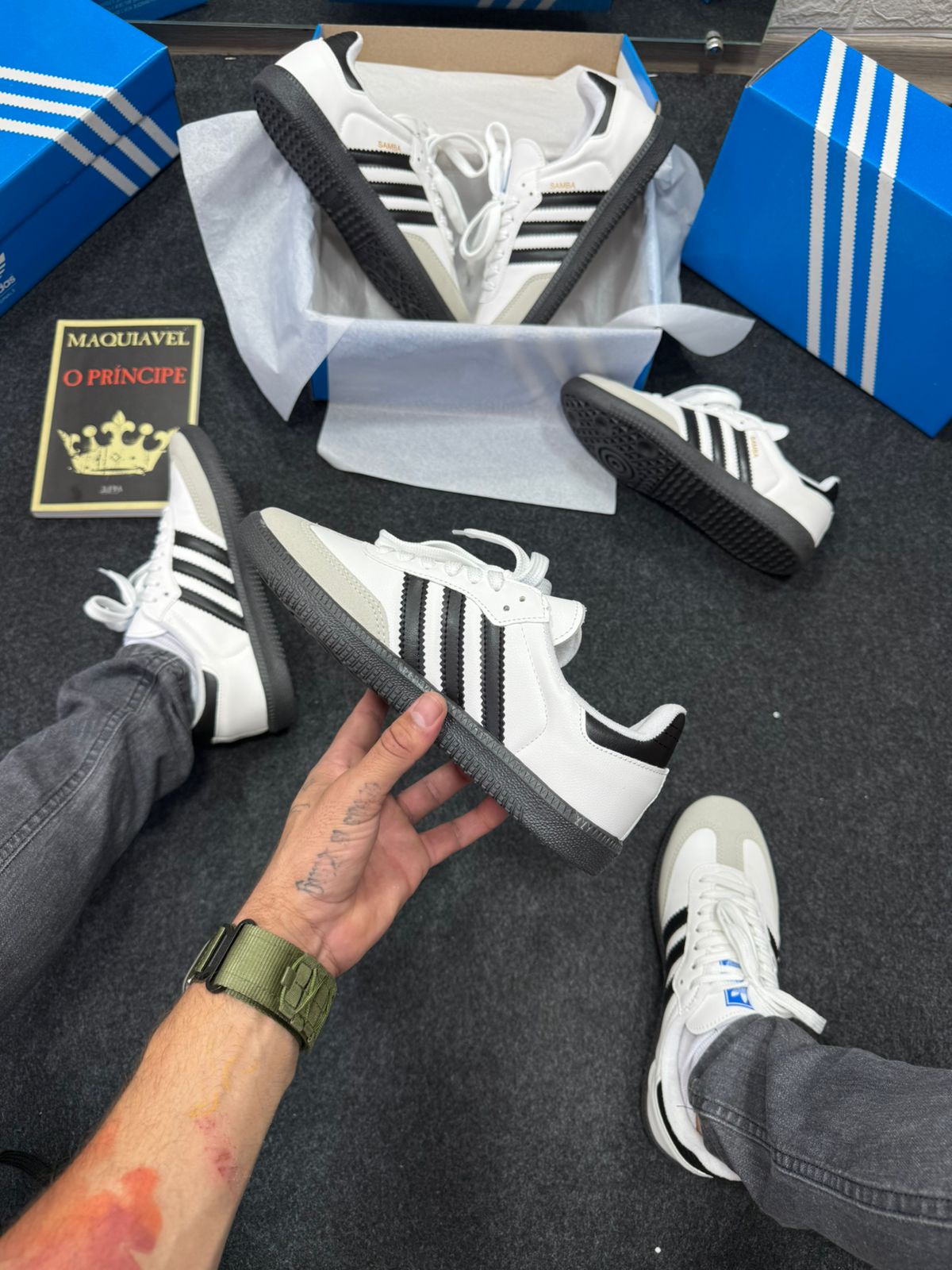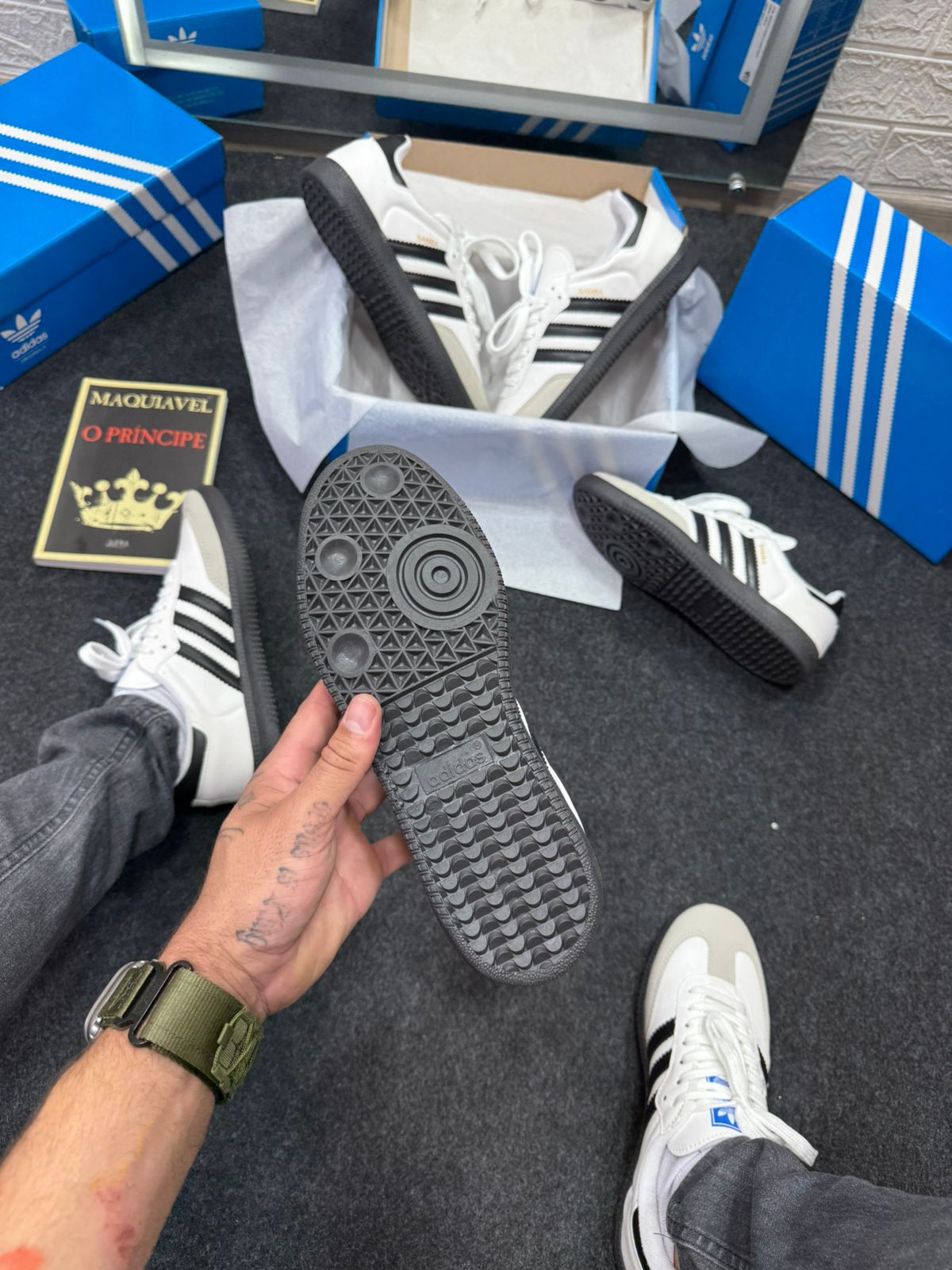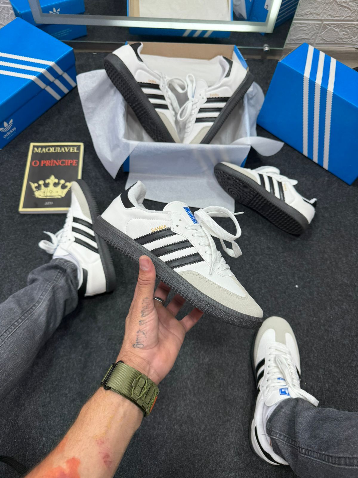 | Linha / Modelo | Adidas Samba (OG/Premium) — lifestyle com herança do futsal/indoor desde 1950. |