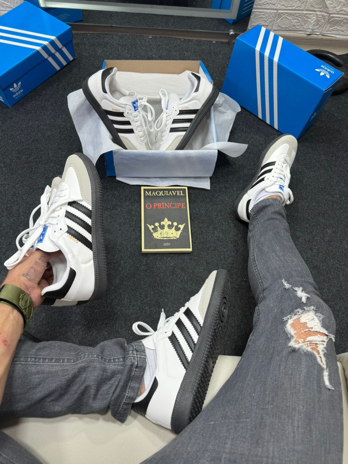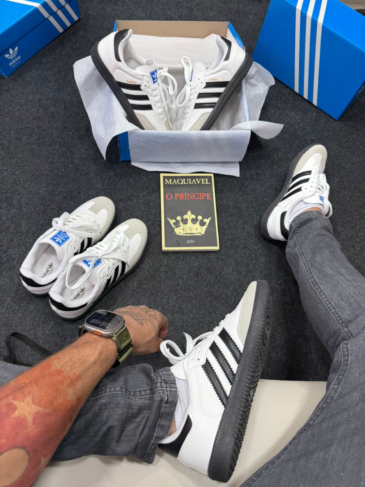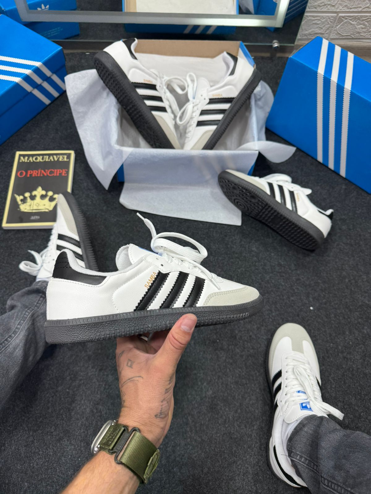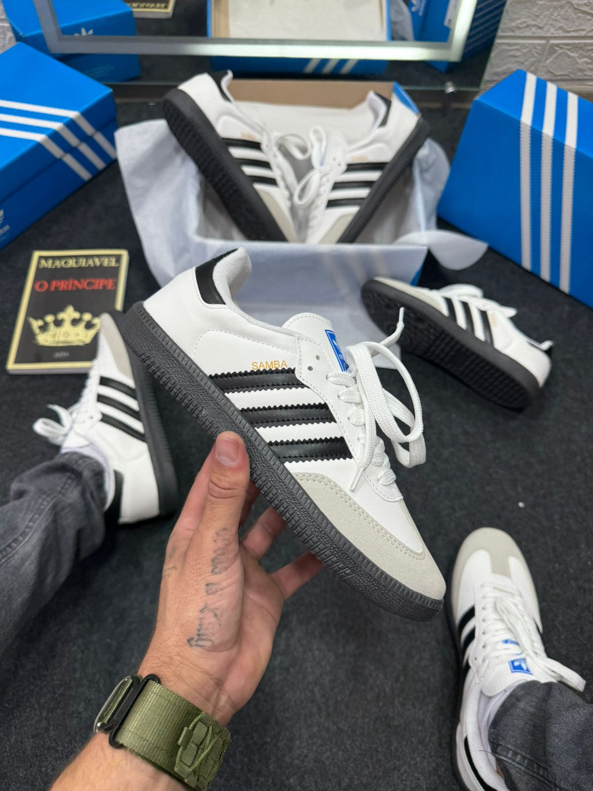 | Linha / Modelo | Adidas Samba (OG/Premium) — lifestyle com herança do futsal/indoor desde 1950. |
