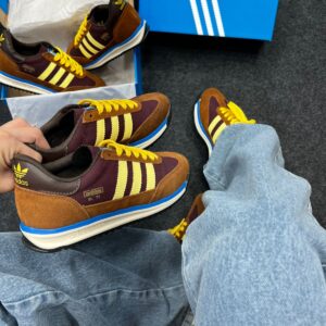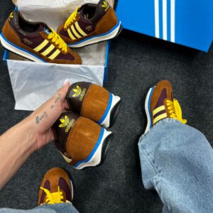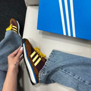 O Adidas SL 72 Marrom e Amarelo entrega o espírito retrô dos anos 70 com uma paleta moderna e contrastante. Seu cabedal combina nylon leve com suede marrom, realçado por detalhes em amarelo vibrante nas listras ou no recorte frontal — conferindo presença sem perder elegância. A herança da silhueta de corrida é preservada no design “super light”, o que o torna um sneaker de destaque para quem busca leveza e estilo.