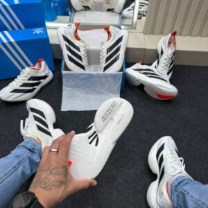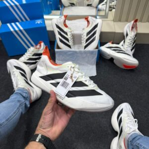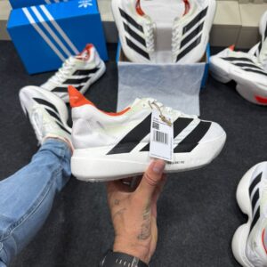 O Adidas Adizero Evo Pro nas cores Branco, Preto e Laranja é um tênis desenvolvido para quem busca velocidade, resposta dinâmica e estilo contemporâneo. Fazendo parte da lendária família Adizero da Adidas, este modelo combina tecnologia de corrida de elite com um design urbano marcante, ideal tanto para treinos intensivos quanto para uso casual esportivo. A paleta com base branca traz visual clean, enquanto detalhes em preto e toques em laranja acrescentam personalidade e destaque ao sneaker.