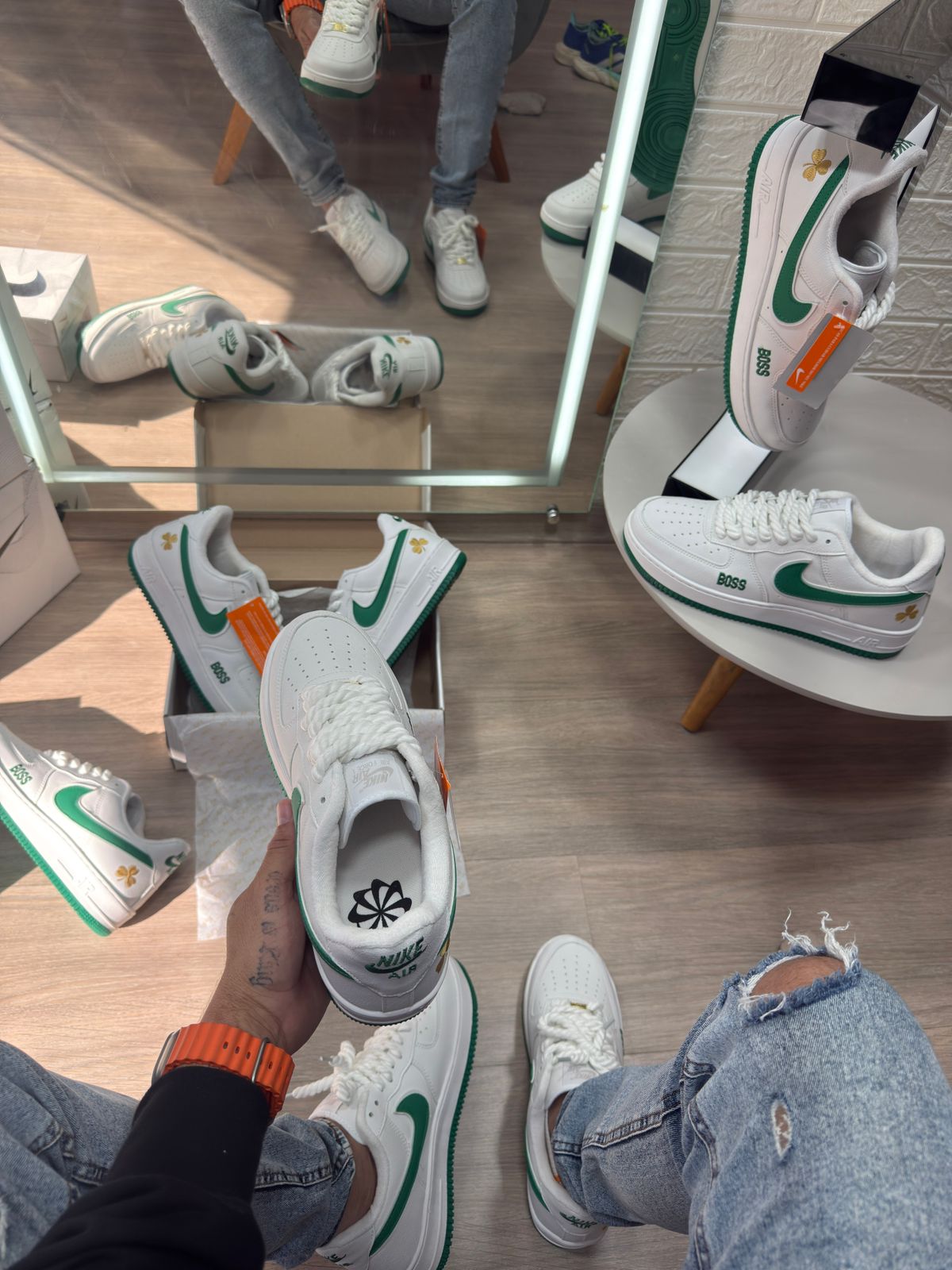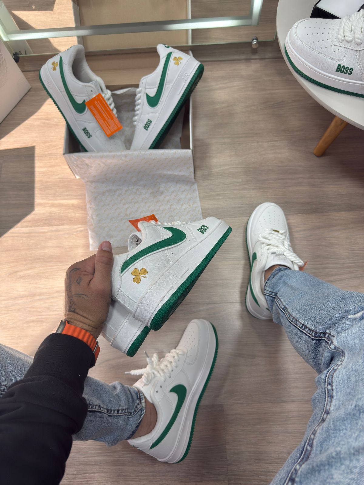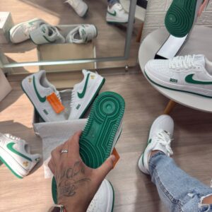 O Nike Air Force 1 “Boss” Branco/Verde Premium é uma escolha superior para quem quer garantir um tênis atemporal, com visual clean e toques de personalidade. Leve, confortável, resistente e cheio de estilo — perfeito para elevar qualquer composição urbana com um toque de exclusividade.
