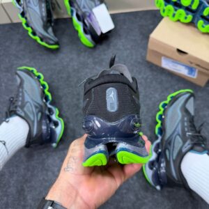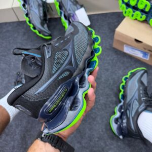 Seu solado em EVA + TPU proporciona maior absorção de impacto e estabilidade durante a caminhada, enquanto o cabedal com materiais respiráveis melhora a ventilação dos pés, garantindo sensação de leveza mesmo após longos períodos de uso. O visual Preto Limão adiciona personalidade ao modelo, destacando-se entre os sneakers mais procurados do momento.