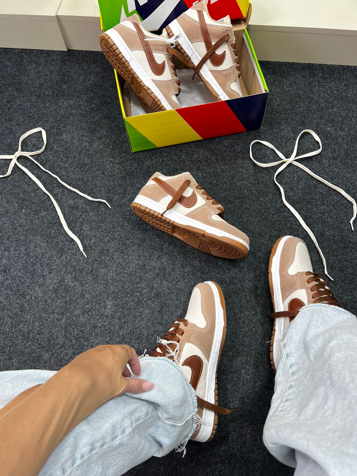 - Modelo: Nike SB Dunk Low Pro — Camurça Caramelo (referência variante “caramelo” / wheat)