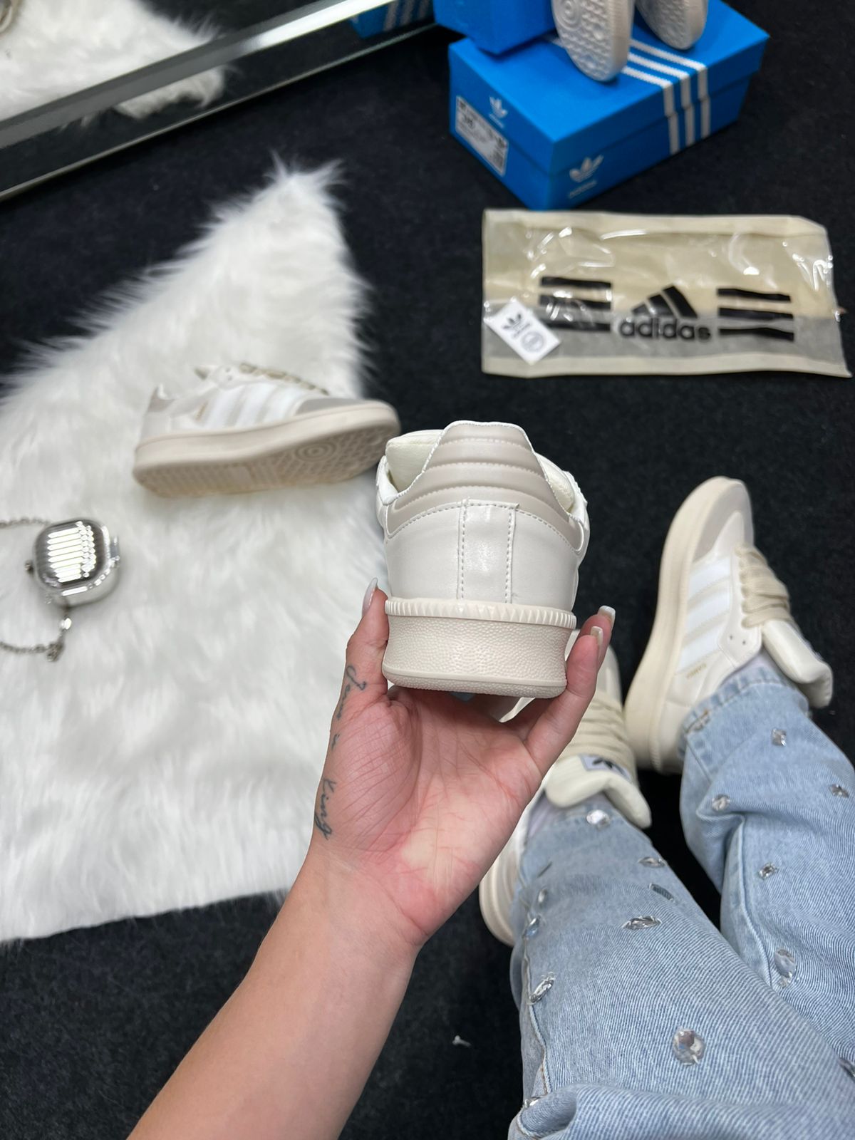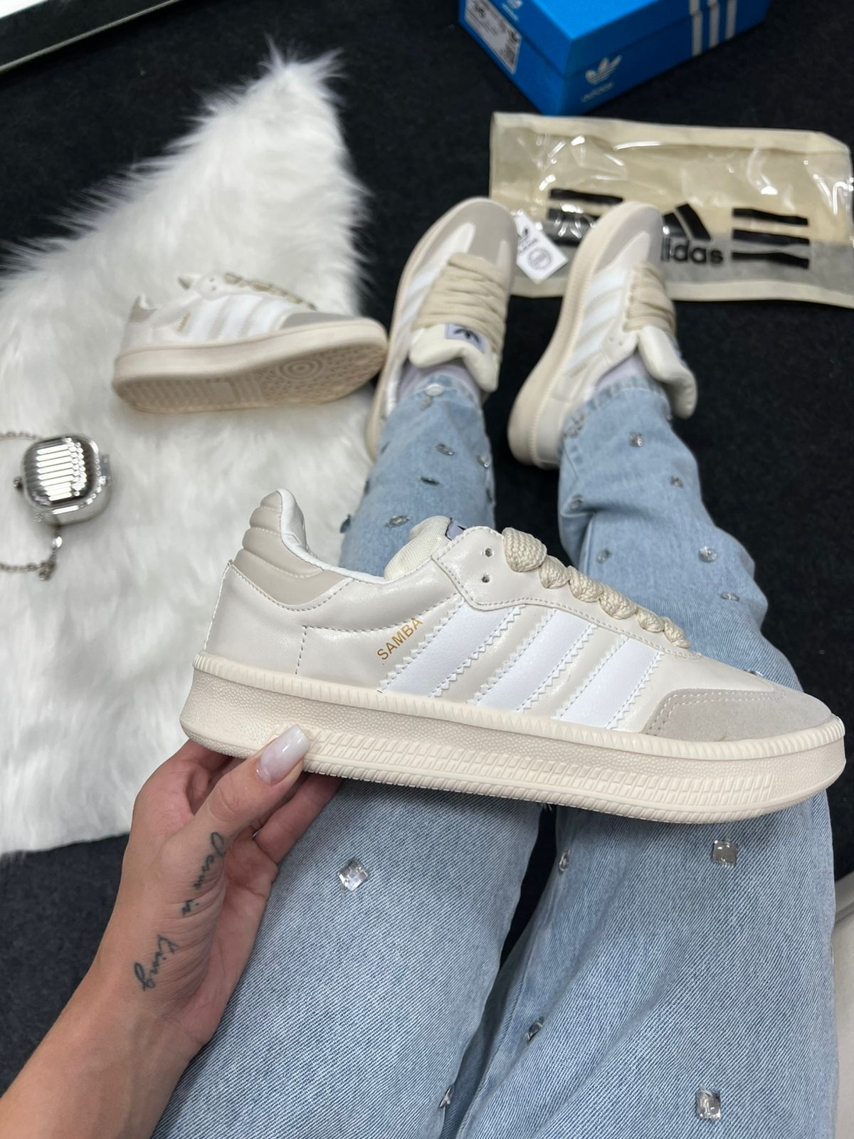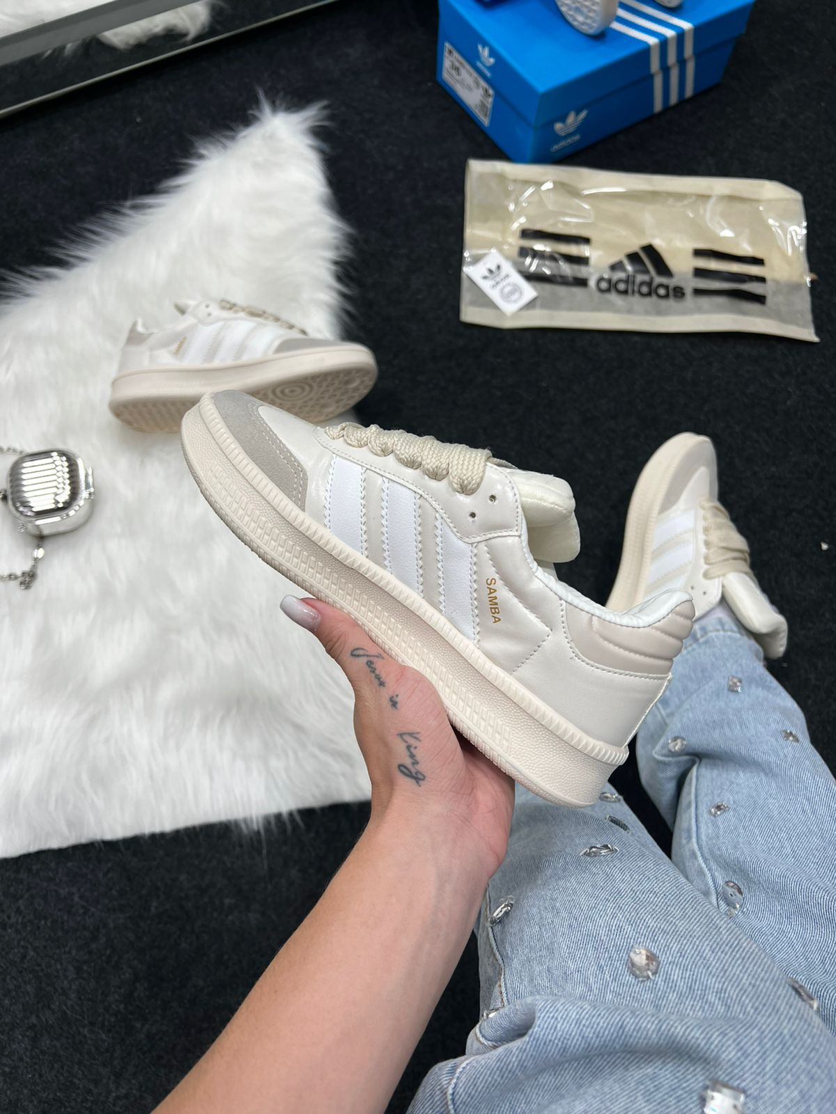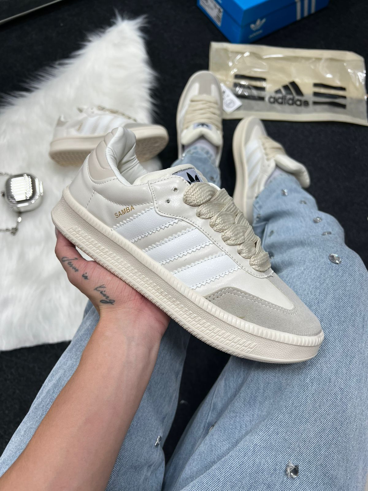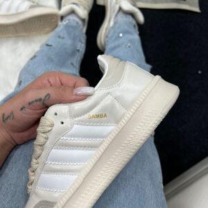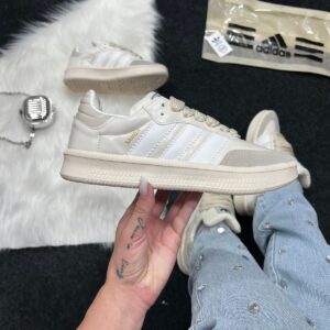 O Adidas Samba XL Premium Pérola combina o legado clássico do Samba com uma versão moderna “chunky” e acabamento refinado na cor pérola (off-white suave). Com cabedal em couro premium e língua acolchoada plus entressola EVA de comprimento integral, ele une tradição, conforto e presença urbana. Ideal para quem revende, este modelo premium traz apelo visual elevado e atrai público que busca moda casual com detalhe de luxo.