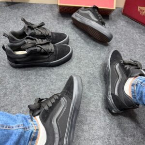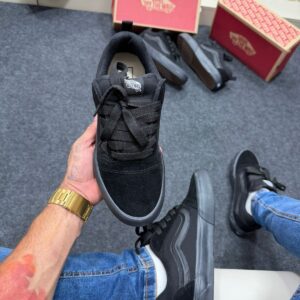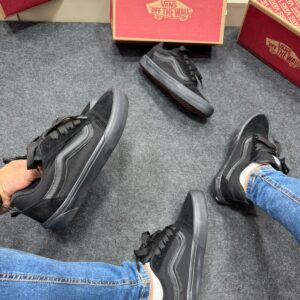 O Vans Knu Skool Vulcanizado Preto/Preto é o sneaker perfeito para quem quer presença no look com um clássico relançado da estética “puffy” dos anos 90. Inspirado no Old Skool, ele traz lingueta oversized, colarinho super acolchoado, cadarços largos e a icônica Sidestripe™ em 3D, criando um visual robusto que está em alta no streetwear — agora numa paleta all black (preto total), extremamente versátil e fácil de vender.