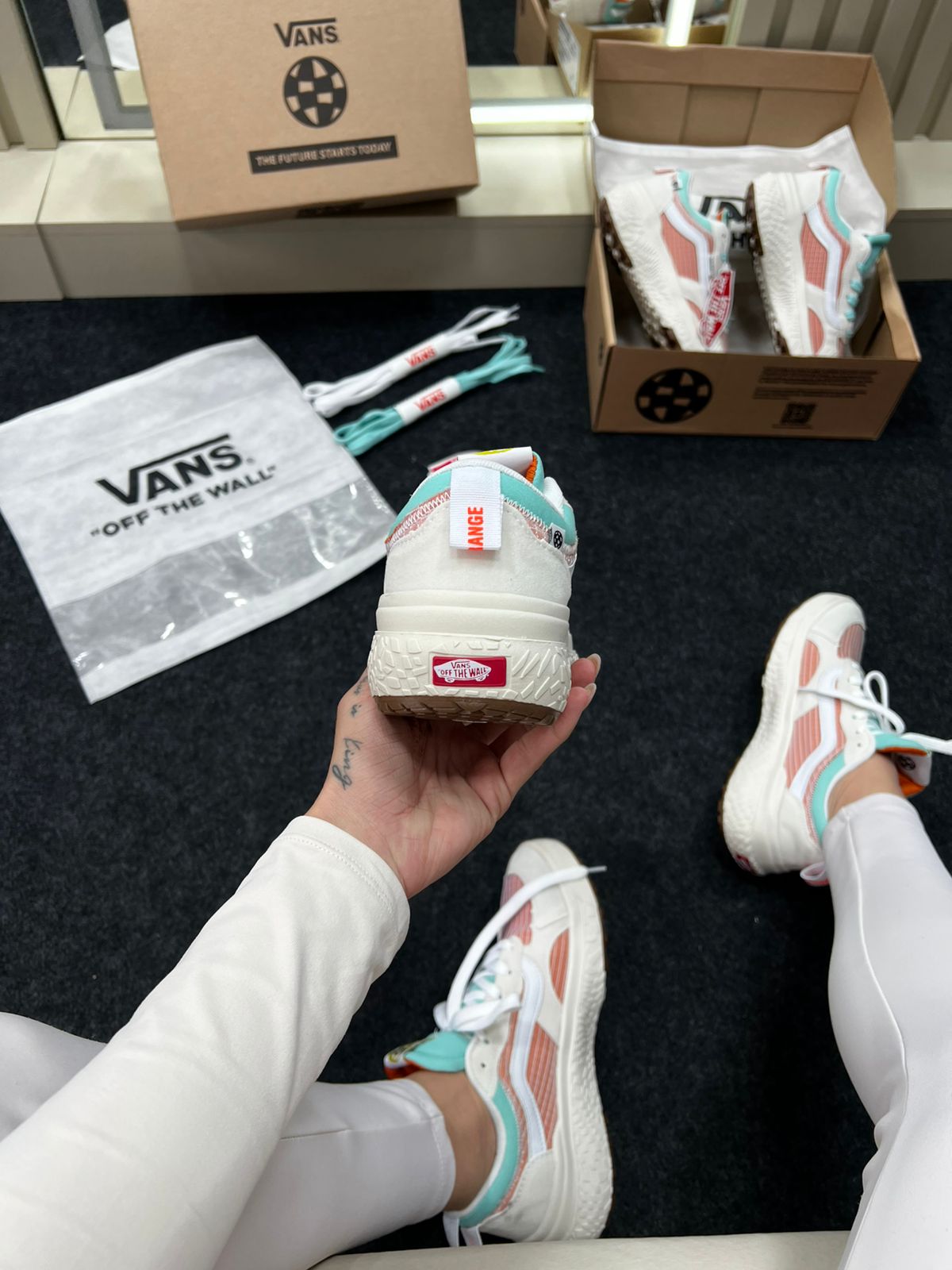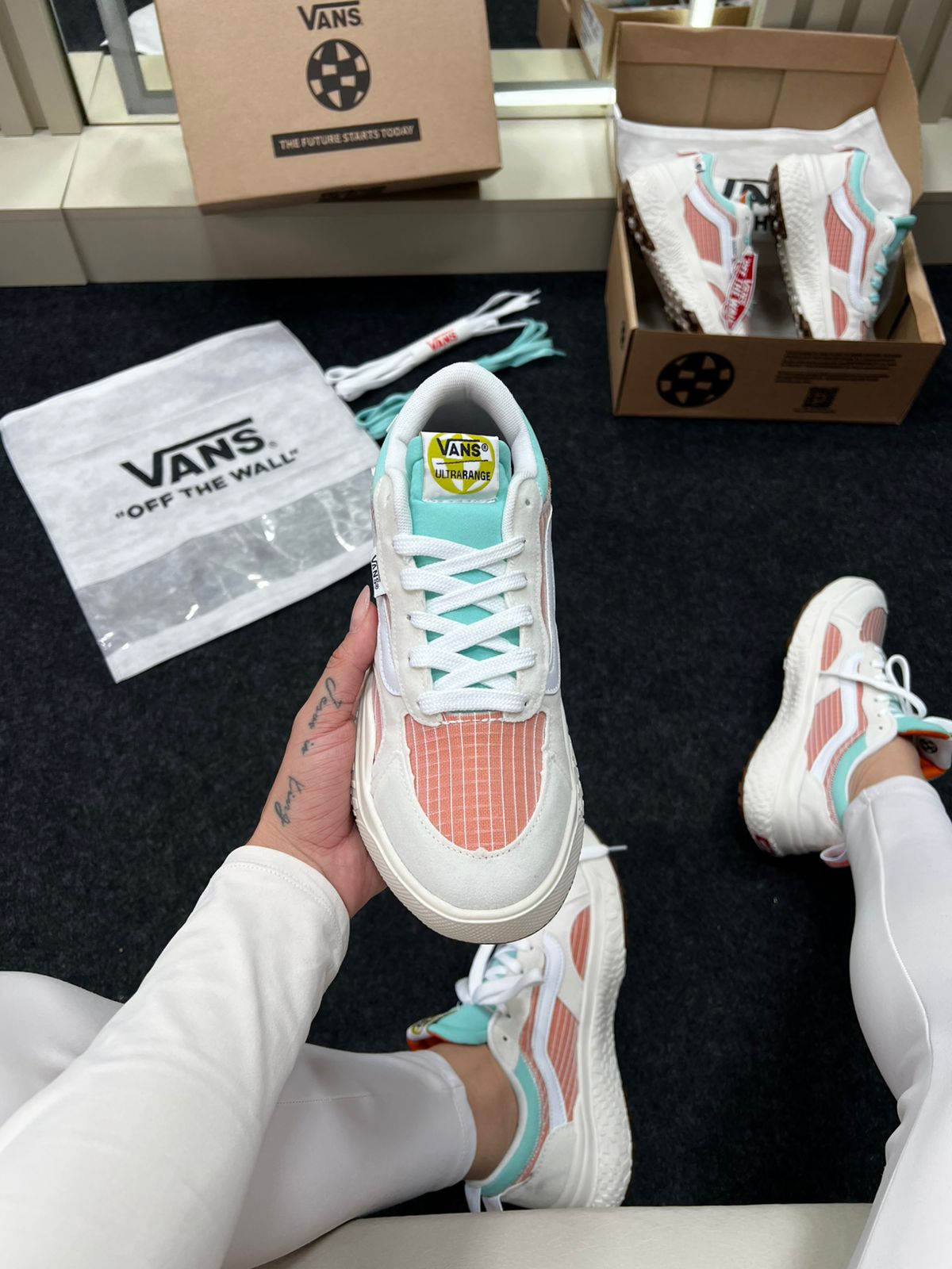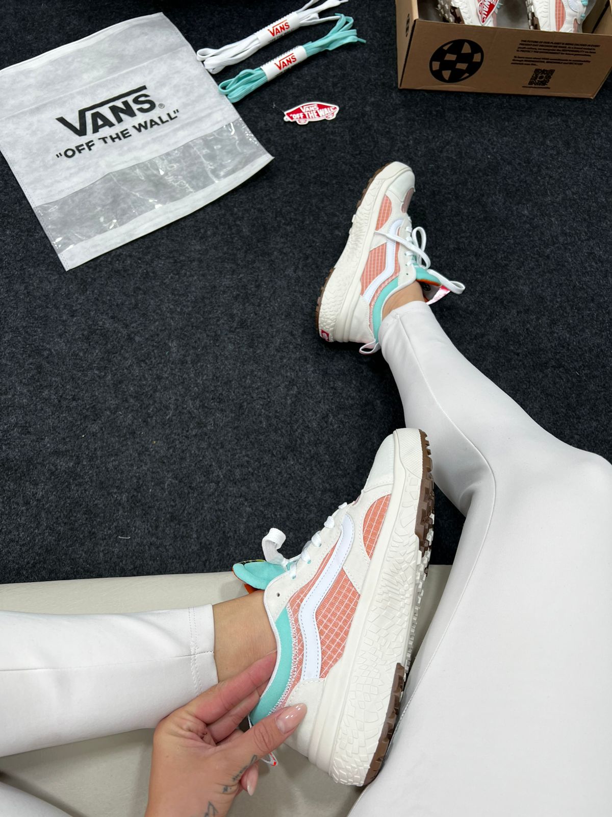 - Modelo: Vans UltraRange Neo VR3 (variante Branco e Laranja)
