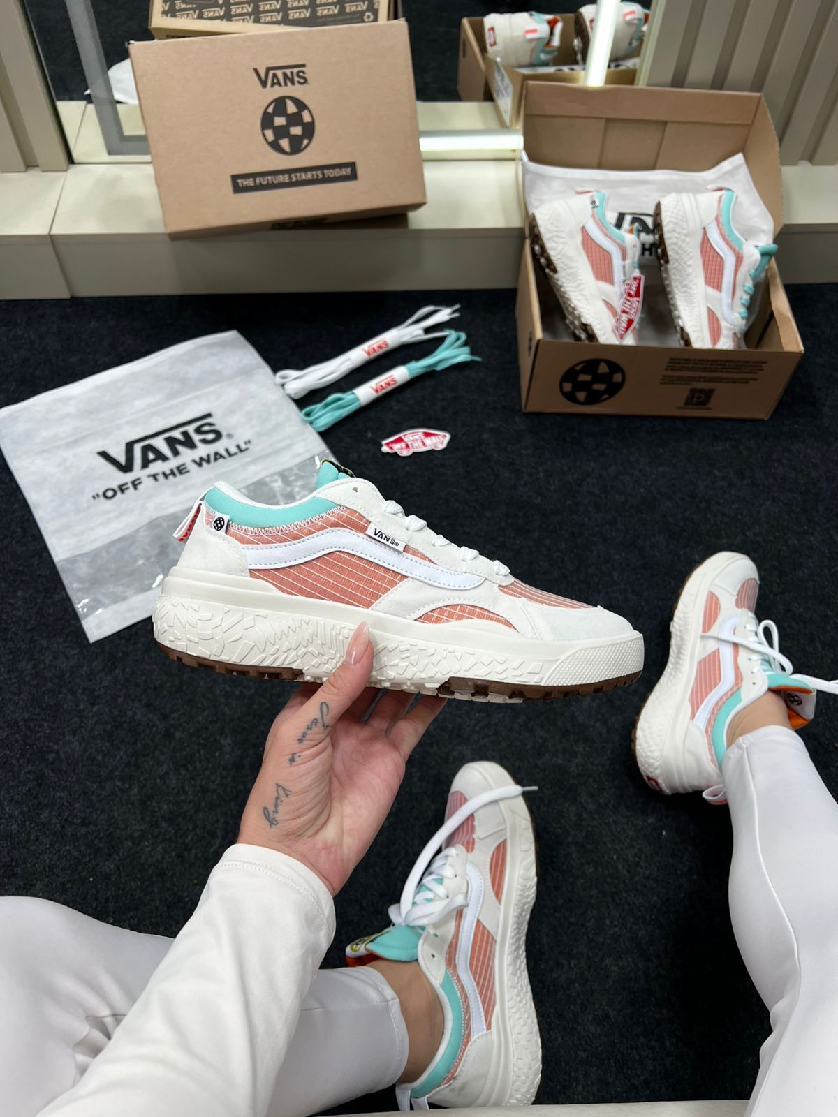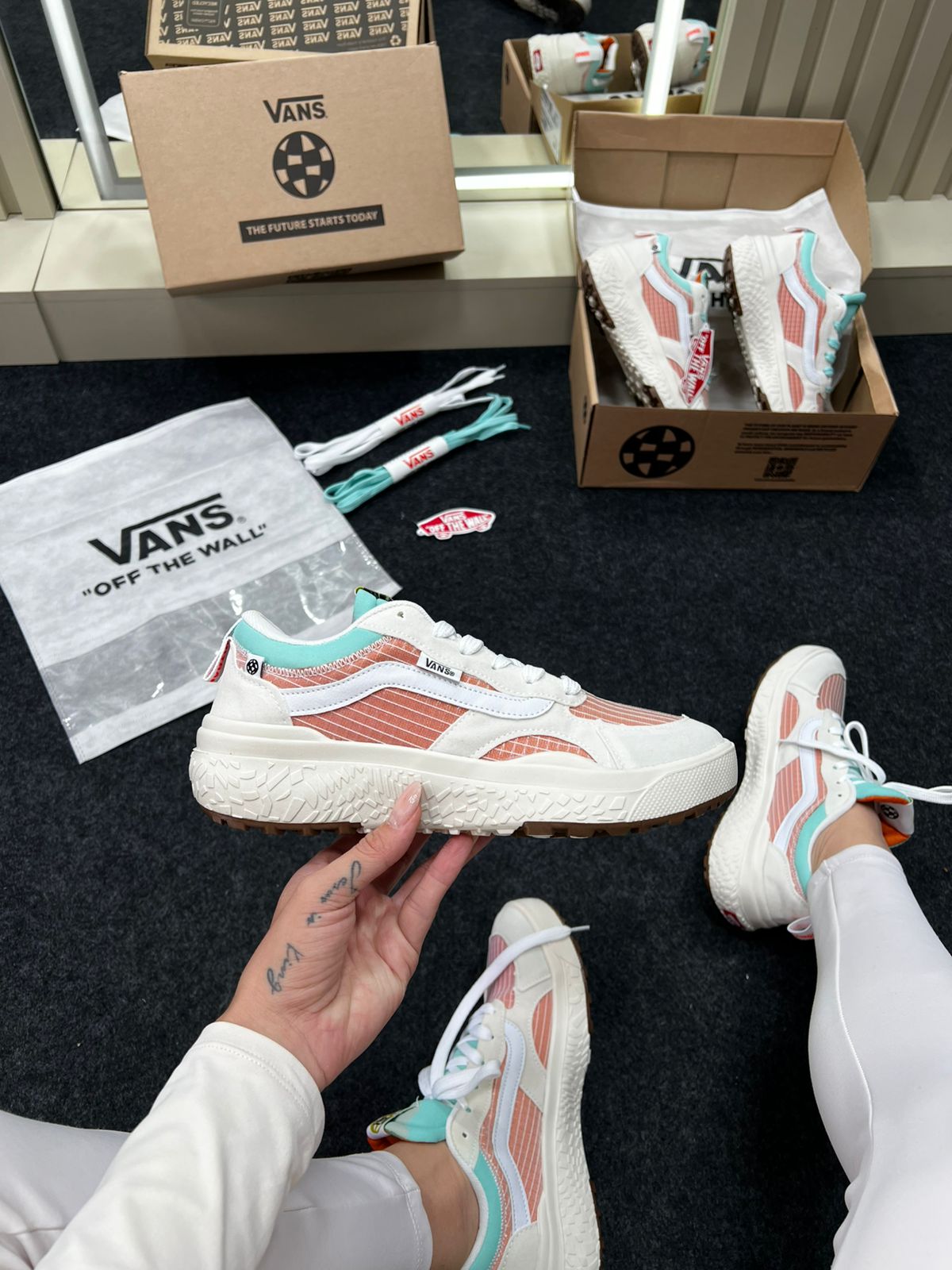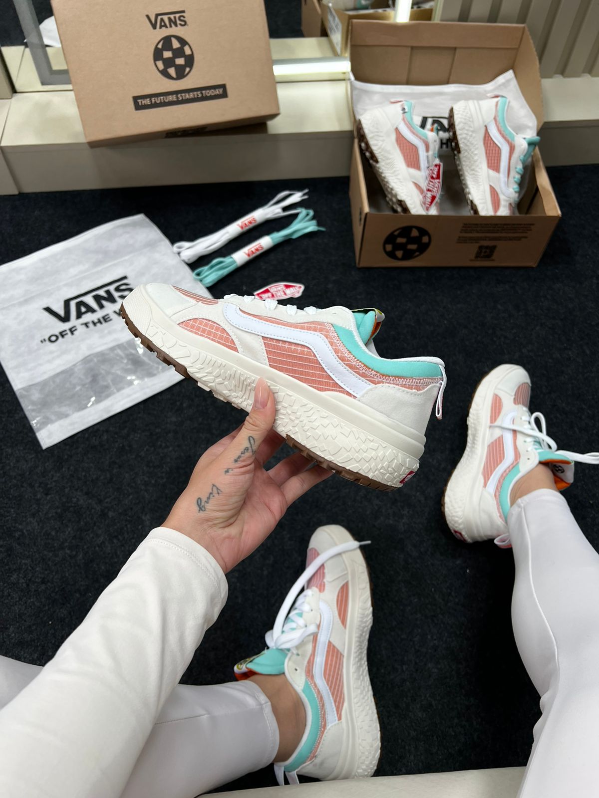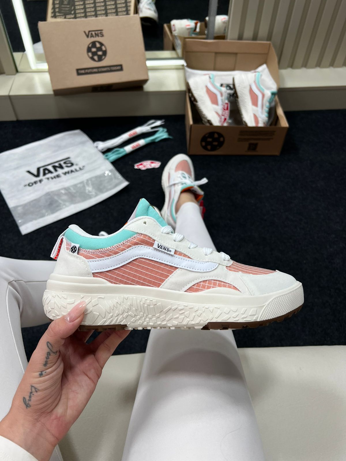 - Modelo: Vans UltraRange Neo VR3 (variante Branco e Laranja)